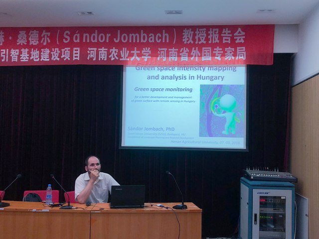 7月3日下午,Sándor Jombach教授为百家乐在线 师生作了题为“Green space intensity mapping and analysis in Hungary”(匈牙利绿地空间强度图示与分析方法)的学术报告。Sándor Jombach教授结合自身在匈牙利多年科研教育和实践经验,从匈牙利首都布达佩斯现状入手,分析了不同类型的卫星影像所包含的不同地物信息,从而定义了绿地空间强度,应用不同精度的卫星图和具体的案例分析,详细介绍了提取图像和分析绿地空间强度的方法,为生态网络的构建奠定了基础。