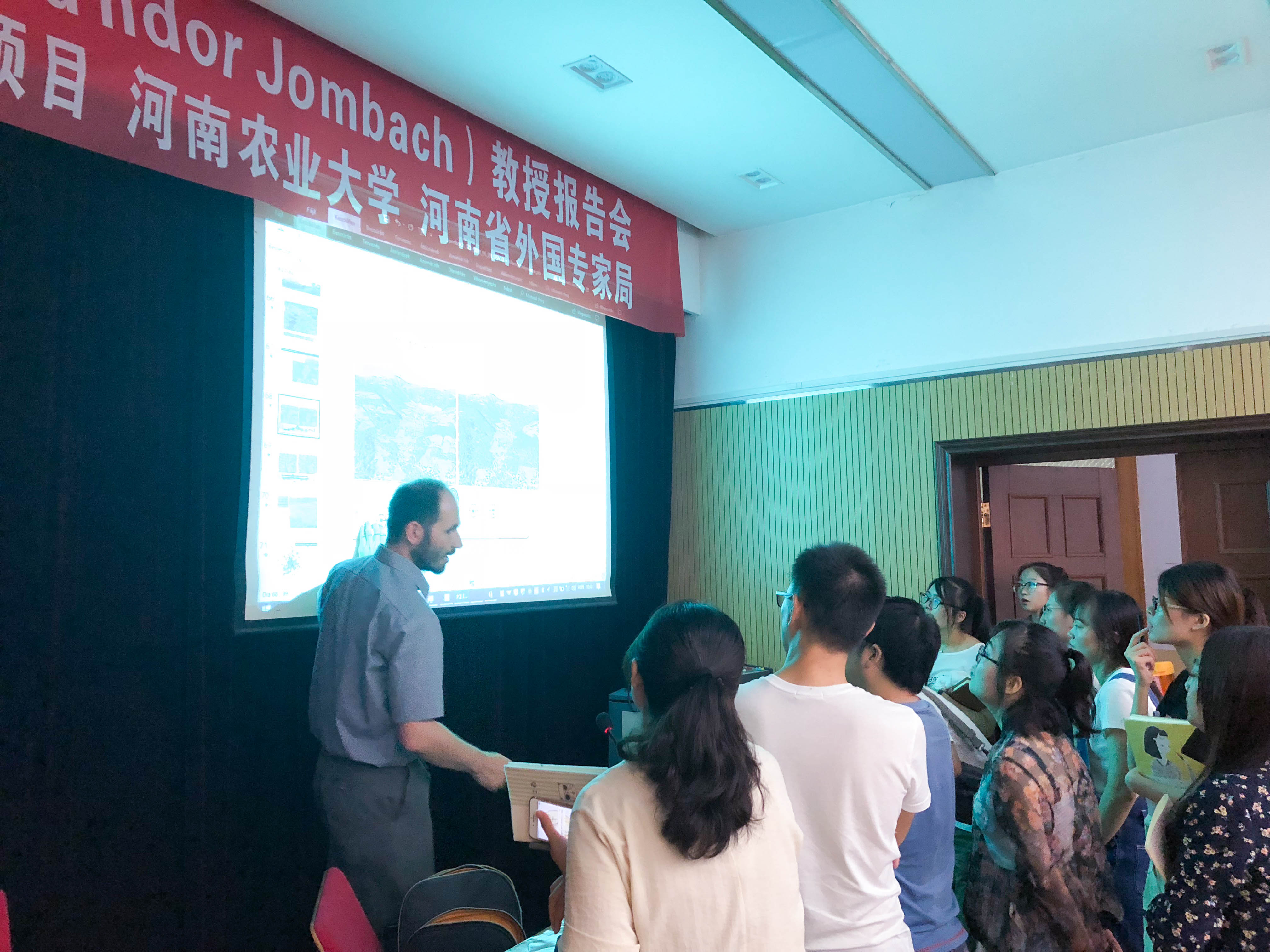 6月27日上午,Sándor Jombach教授与我校方进行了风景园林学学科介绍交流会,详细阐述了河南农业大学风景园林学学科发展史及园林系学科发展史。期间教授在交流过程中,对我校风景园林的研究方向及发展表示极大的认可,同时交流中双方在该专业未来的发展需要结合社会、经济、生态功能等上达到共识。会议期间,百家乐在线 研究生踊跃发言,Sándor Jombach教授对学生提出的问题一一解答。