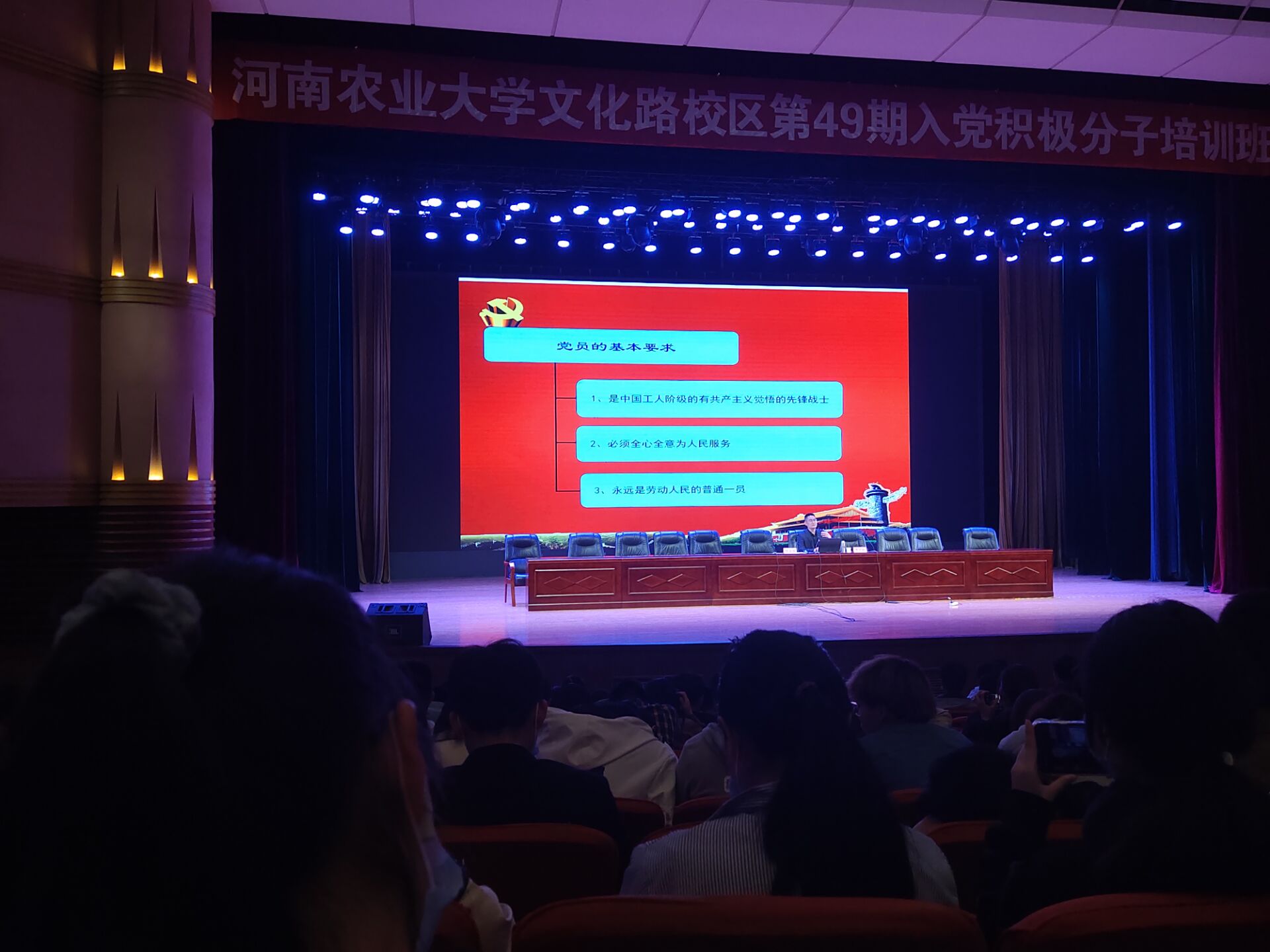 仪式伊始,全体师生奏唱国歌,随后,风景园林与艺术百家乐在线 党委副书记胡明忠宣读《关于举办第49期入党积极分子培训班的通知》,介绍本次培训班的意义和课程设置等。接着,机电工程百家乐在线 党委副书记赵宁宣读《入党积板分子培训班学员管理规定》,规范党规章制度,加强对学员的管理。最后,理百家乐在线 党委书记候金超做《中国共产党党员的条件和发展程序》报告。