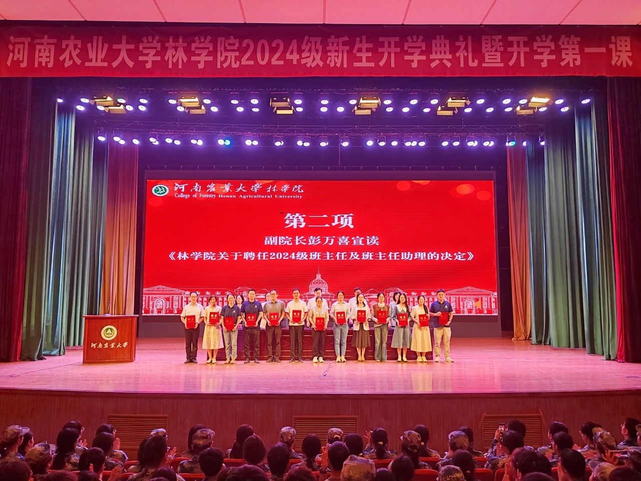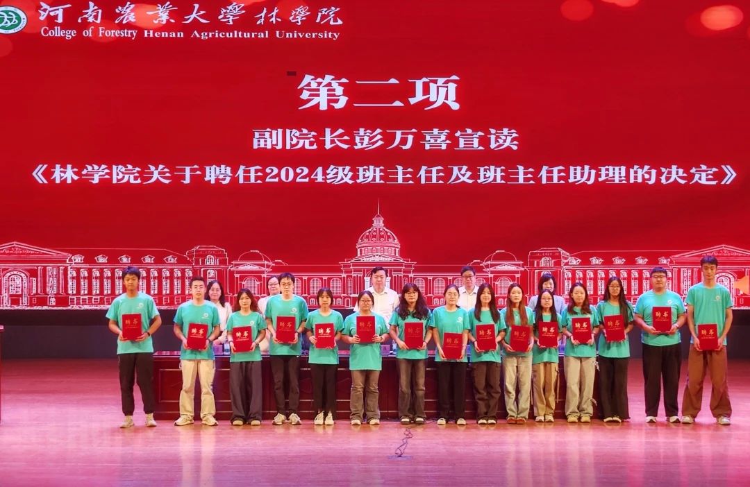 关于2024级班主任及助理班主任聘任的决定》,与会领导为新生班主任及新生助理班主任颁发聘书。