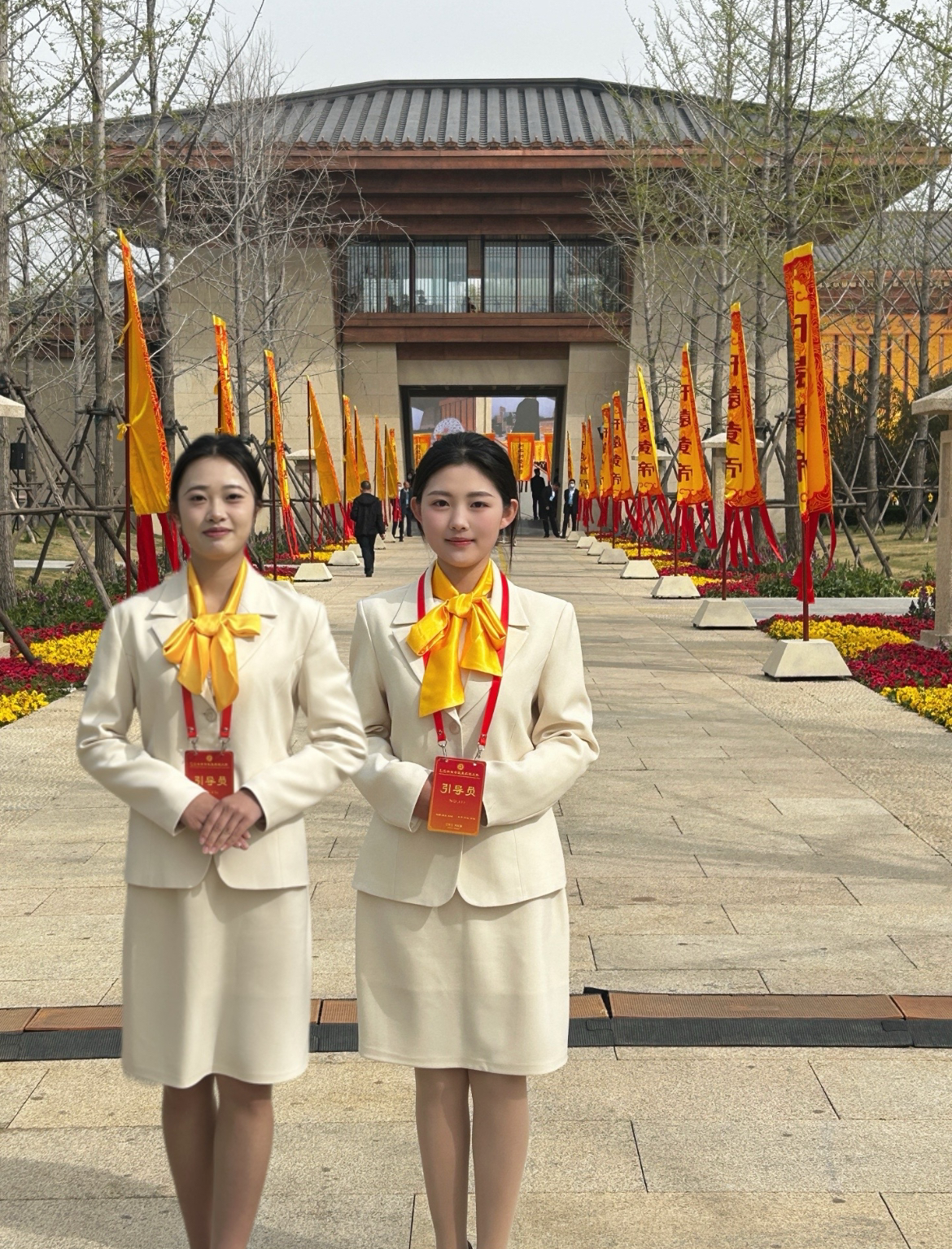 旅游管理专业耿小玉和田欣婷同学脱颖而出,在经过为期7天的封闭式培训考核后,成为拜祖大典政务讲解接待团队中的一员。她们以最好的精神面貌、高水准的服务迎接四海嘉宾,成为大典现场一道亮丽的风景线,受到海内外嘉宾广泛好评。
