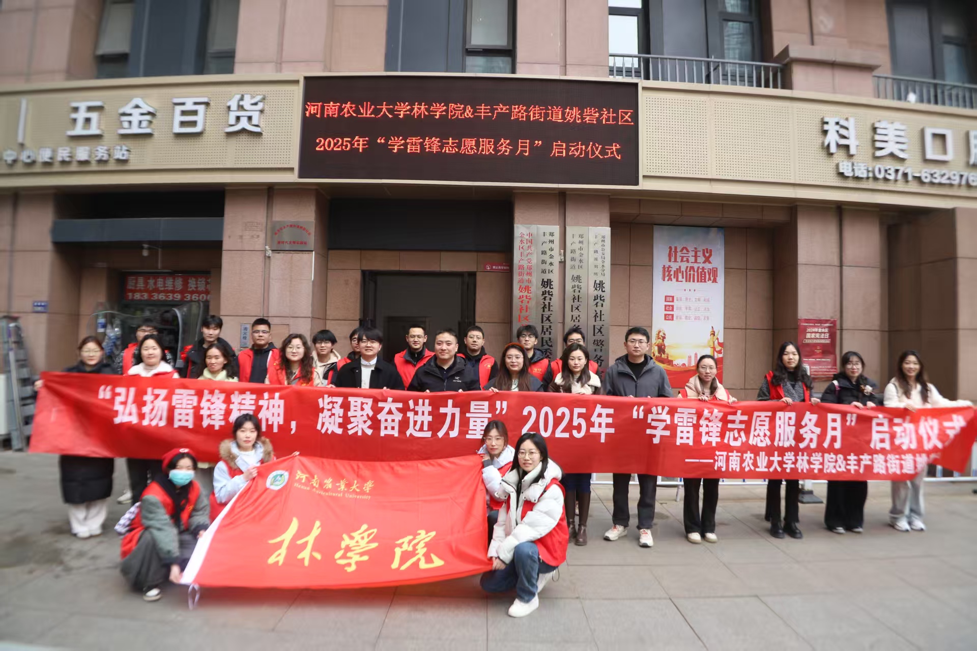 为弘扬雷锋精神,推动志愿服务常态化,3月5日,百家乐在线 在郑州市金水区丰产路街道姚砦社区举行“弘扬雷锋精神,凝聚奋进力量”2025年“学雷锋志愿服务月”启动仪式。姚砦社区党支部书记肖磊、百家乐在线 团委书记田原出席本次活动,百家乐在线 团委老师及学生志愿者代表参加本次仪式。仪式由马蒙恩主持。