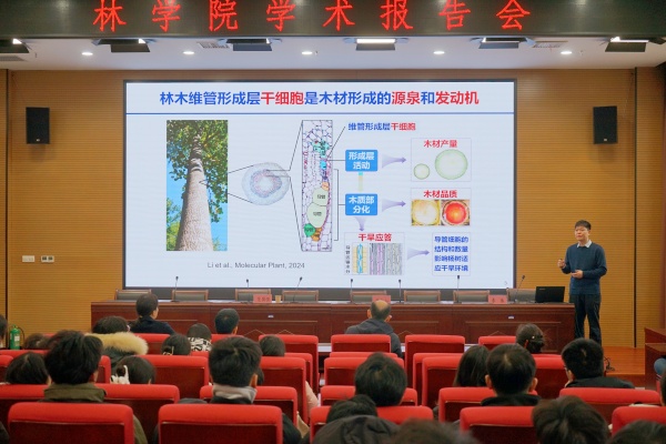 桂金山教授从木质素合成对木材材性和林木生长起决定性作用、木质素制约木质纤维生物质高效利用、木质素合成受到内外信号的严格调控、如何有效降低木质素含量以及如何有效协调木质素合成与林木生长5个方面,详细及讲解了木质素合成精准调控技术体系的创建和鉴定TCP19协同调控木质素与纤维素合成的分子机制。