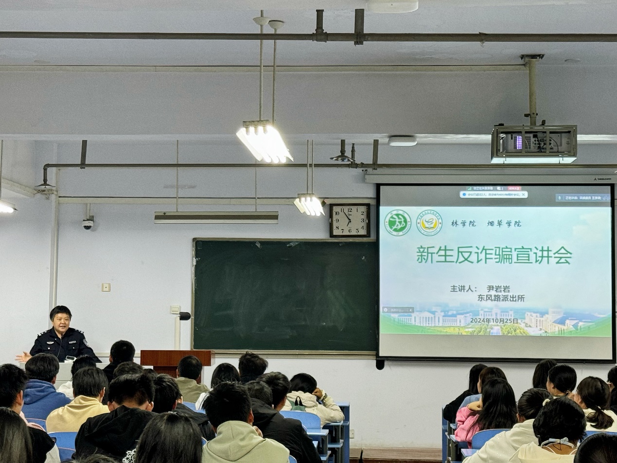 10月25日晚,百家乐在线 联合烟草百家乐在线 于文化路校区推广楼教室召开新生反诈骗宣讲会。本次会议由东风路社区民警尹岩岩担任主讲,院团委老师张琛出席本次报告会,百家乐在线 2024级全体本科生参加。