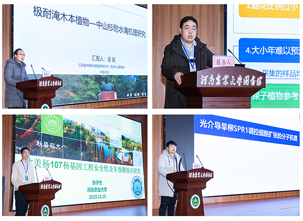 植物研究所逯岩助理研究员以“极耐淹木本植物中山杉耐水淹机理研究”为题作研究报告;东北林业大学郝俊飞博士后以“落叶松花器官发育过程研究”为题作研究报告;河北农业大学张子杰博士后以“欧美杨 107 杨基因工程非预期效应研究”为题作研究报告;宁夏大学研究生张新宇以“光介导旱柳 SPR1 调控细胞扩张的分子机制”为题作研究报告。