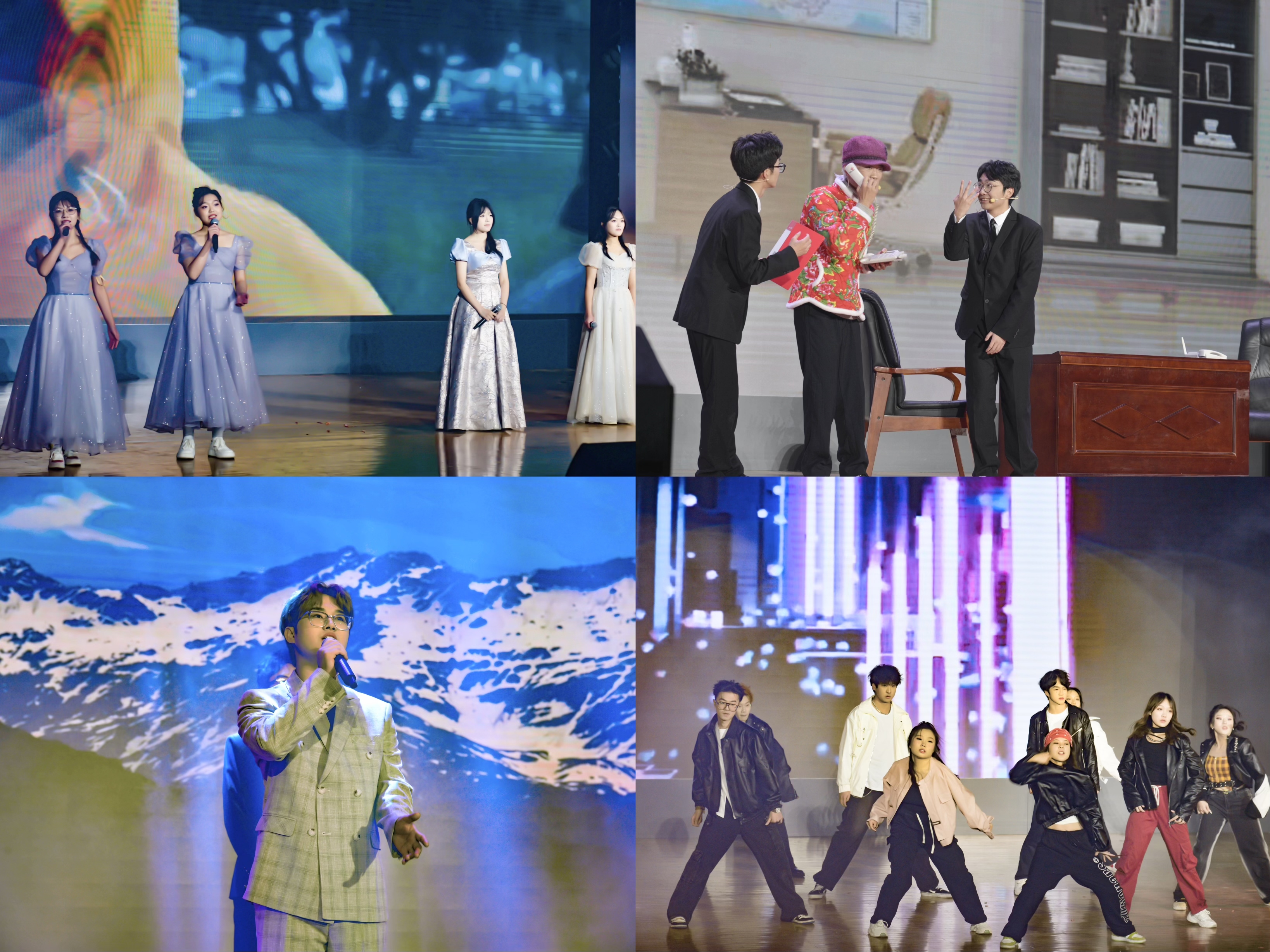 晚会在青春昂扬、活力四射的开场舞蹈《奔跑吧青春》中拉开帷幕,本次晚会共分为“龘龘耀新年”、“朤朤赢未来”两个篇章。街舞《冬日女孩》、《开心跳龙门》以激情洋溢的舞蹈展现出饱满的青春活力、挥洒出绚烂的青春光芒;舞蹈《兰亭序》、《莲韵》、《旑旎》以婉转的歌声,轻盈的舞姿,彰显出传统文化的魅力,让师生身临其境感受传统文化之美;舞台剧《共和国之恋》带领我们穿越历史,一同感悟科学家们用生命写下这份对祖国的情书;杂技《龙鼓竹韵》空竹飞舞、鼓声激昂,伴随着各种高难度动作,现场气氛也来到高潮;小品《反诈银行》和《天网恢恢》以幽默诙谐的方式告诫师生要谨防诈骗,保护自身财产安全;歌曲《林听•理音》、《如愿》以歌声为载体,唱出了两院青年学子对新年的满满信心与无限期望。最后,林、理师生共同演绎的歌曲《一起向未来》以充满活力的歌声唱响了新年新篇章。本次晚会至此也落下了帷幕。