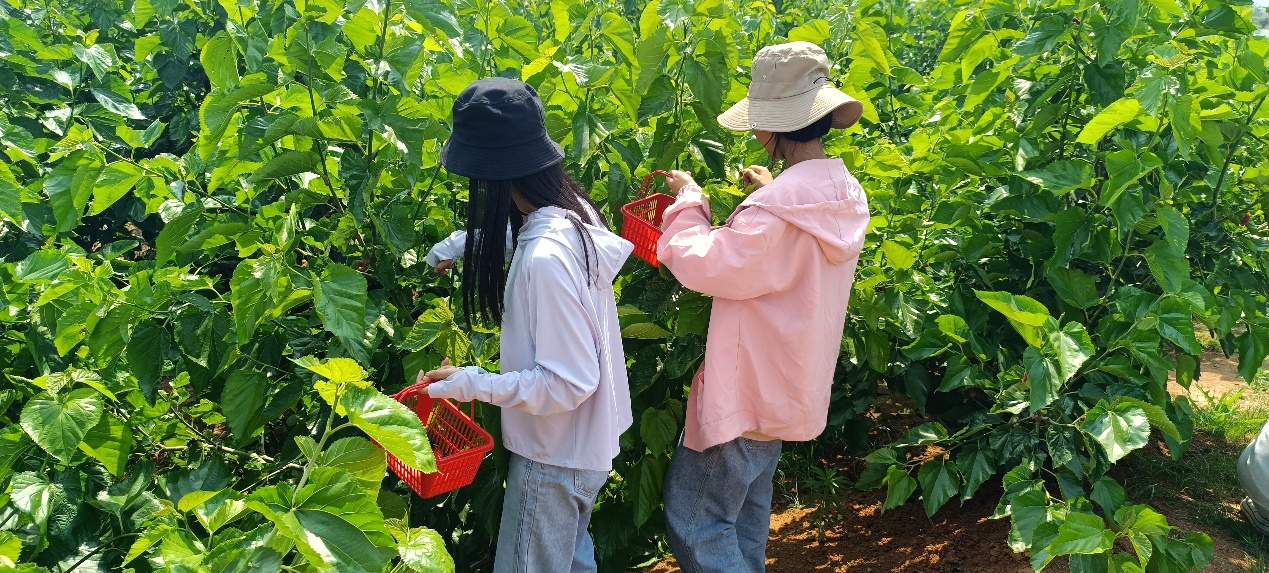 基地里的桑葚个头饱满,色泽鲜亮,味道鲜甜,同学们不仅感受到了收获的快乐,更懂得了厚植“爱农情怀,练就兴农”本领的深刻含义。