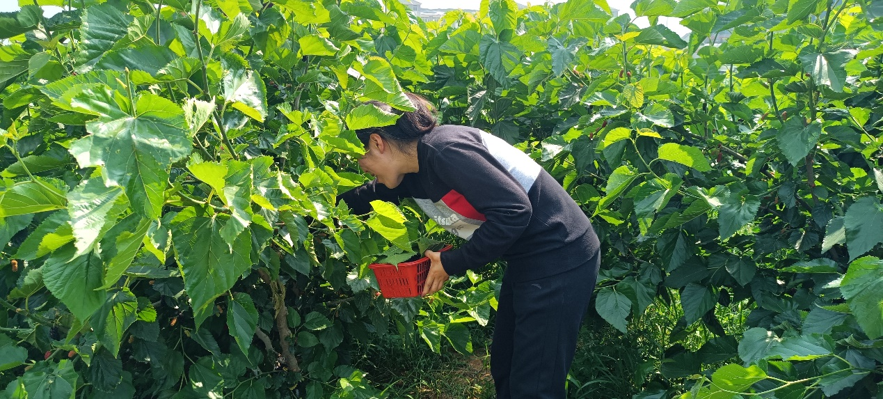 最后,师生一同前往桑葚采摘园,采摘桑葚。