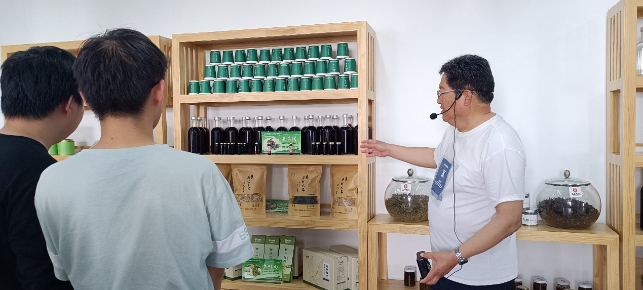 为同学们解说桑果醋、霜桑茶叶
