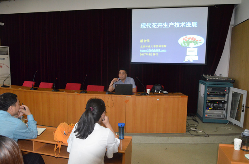 5月26日下午,百家乐在线 邀请了北京林业大学园百家乐在线 潘会堂教授在2号楼学术报告厅为百家乐在线 师生做了“现代花卉生产技术进展”的学术报告。副院长孔德政及园林系师生聆听了报告。