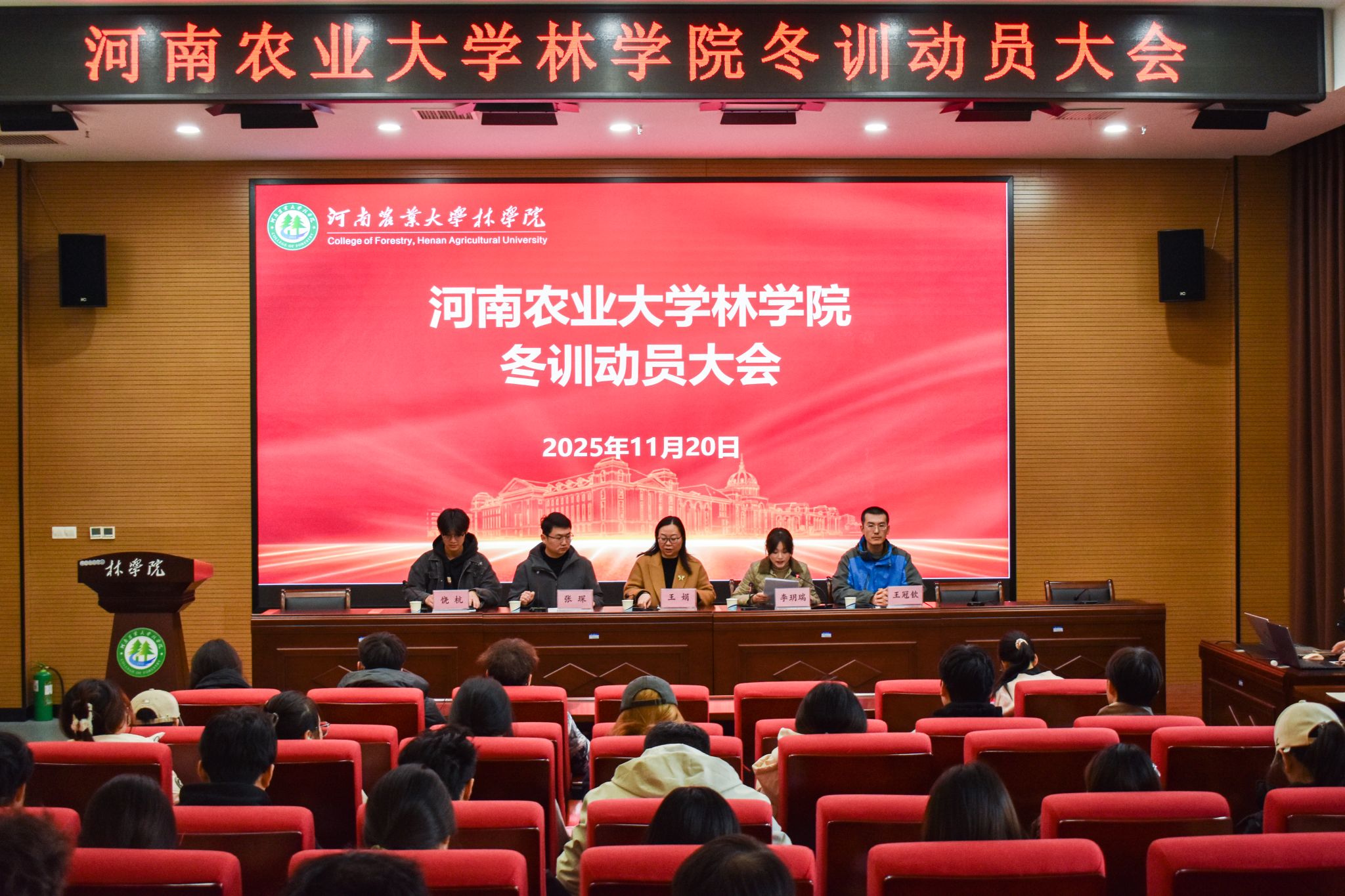 于龙子湖校区力行楼南428报告厅召开2025年冬训动员大会。院党委副书记王娟、院团委老师李玥瑞、张琛、王冠钦、饶杭参与本次会议,院田径队成员、各班体育委员参加。会议由李玥瑞主持。