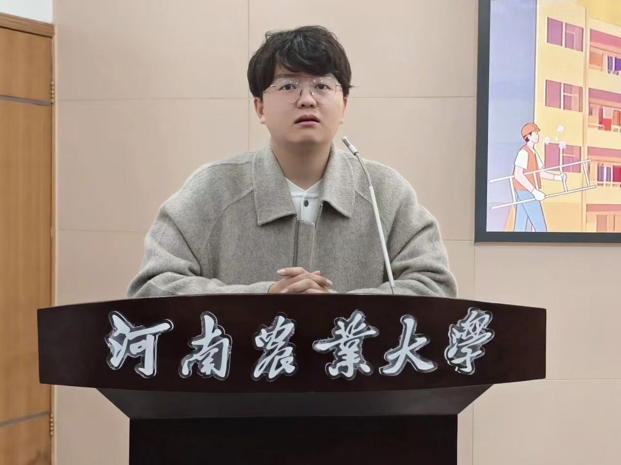 比赛开始后,各宿舍代表依次上台,通过精心制作的PPT和生动的实景视频,全方位展示宿舍的设计灵感、布局巧思与文化内涵。有的宿舍走温馨治愈风,以暖光灯饰与手作摆件营造家的氛围;有的宿舍主打潮流艺术风,墙面涂鸦与创意装置尽显青春个性。各宿舍风格迥异,从传统到现代,从生活到专业,全方位展现了同学们的创意巧思,现场掌声不断。活动最后,马蒙恩进行总结。他肯定了参赛宿舍的多元风采,指出大赛旨在通过创意装潢的展示,共同营造富有个性与深度的宿舍文化,为同学们打造展现自我、凝聚集体的舞台。他表示,同学们在赛事中展现的审美素养与团队协作力令人欣喜,期待这份对生活的热爱能延续到校园生活的方方面面。