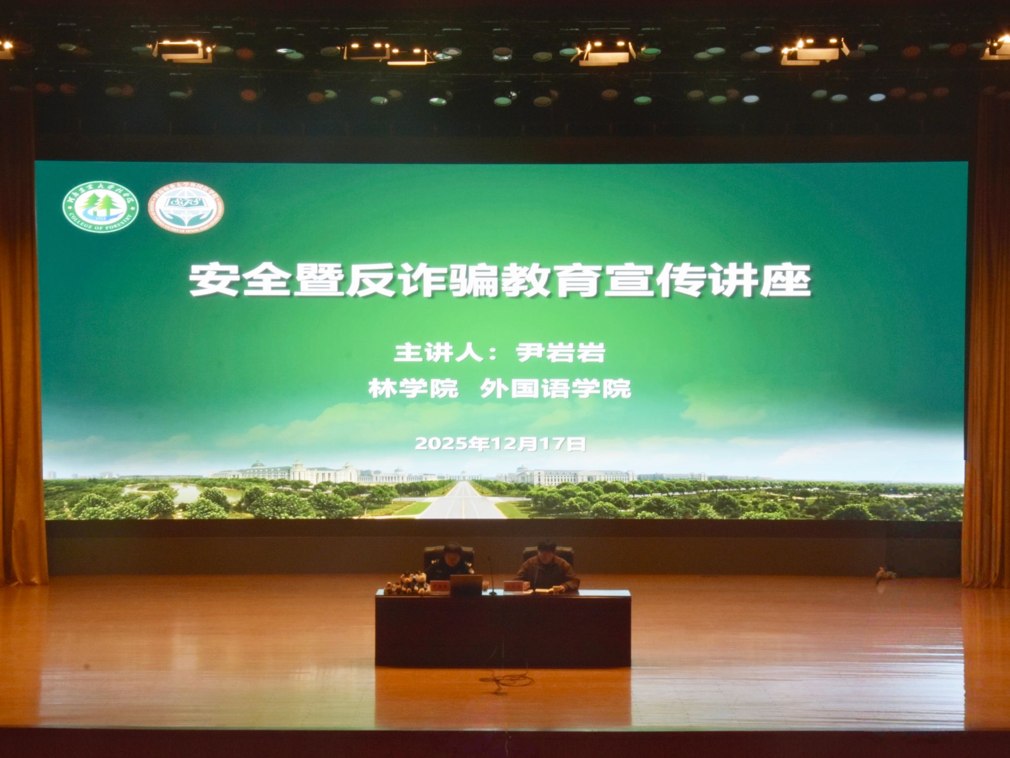于文化路校区大礼堂联合开展安全暨反诈骗教育宣传讲座。本次活动特邀东风路派出所尹岩岩警官主讲,院团委老师施佳伟主持,两院2025级全体本科生参加。