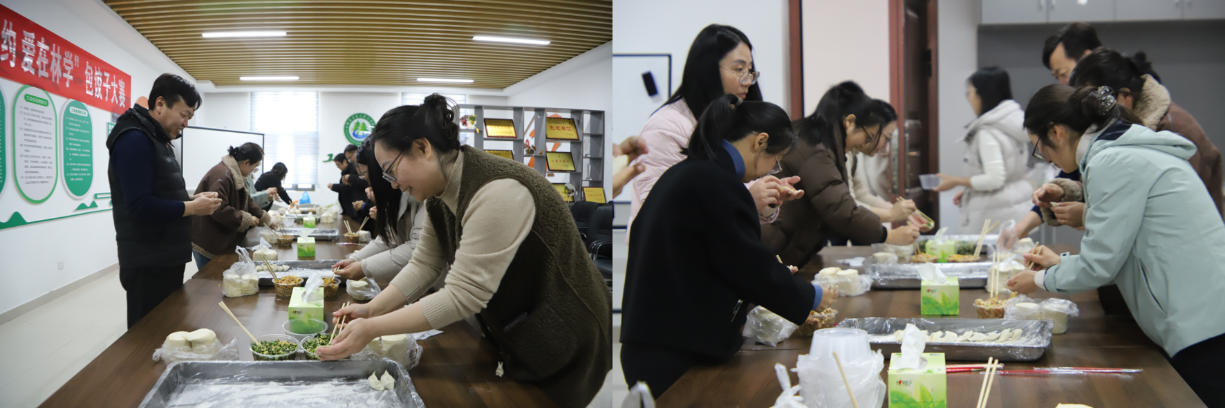 于力行楼-南-247举办第五届“温馨相约 爱在林学”包饺子大赛。院党委书记化青报、院党委副书记王娟、副院长张学芳及百家乐在线