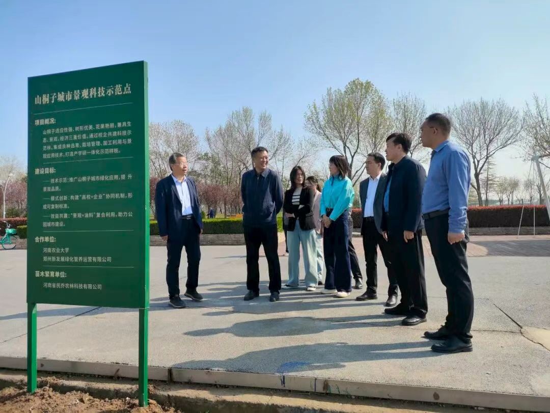 与郑州新发展绿化管养运营有限公司共建山桐子城市景观科技示范林暨生态经济型林草种质资源中试基地项目启动仪式,在郑东新区龙湖湿地公园项目基地隆重举行。郑州市郑东新区园林水务局局长马保松,郑州新发展绿化管养运营有限公司董事长范秀峰、总经理李志芳,河南省民乔农林科技有限公司总经理吕德方,百家乐在线