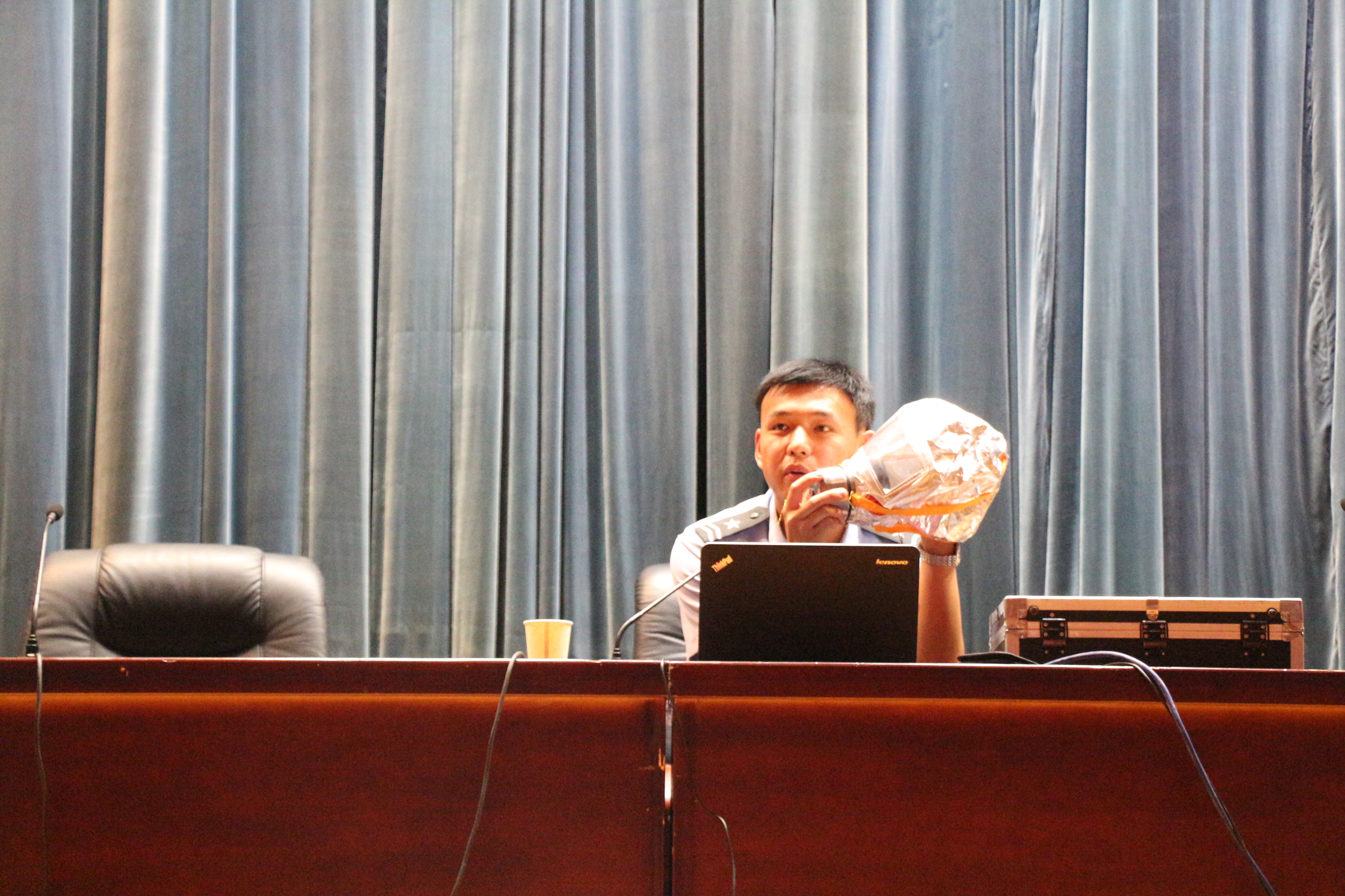 来自河南省安居防火宣传中心的特级教员韩鹏,结合自己从事消防培训工作多年的经验,用生动幽默的语言,深入浅出的讲述了容易引发火灾的消防安全隐患、遭遇火情紧急情况时的处置方法等问题。他表示大学人员密集,宿舍、食堂、实验室、教室等公共场所是火灾易发点,因此,加强大学消防管理,提高学生及教师的消防意识和消防素质显得尤为重要。随后,韩教员带领同学们在东篮球场进行了消防灭火演练,向大家讲解了初期火灾灭火技能、火场逃生疏散,并现场演示、指导同学们正确使用灭火器,使同学们对如何正确使用灭火器、正确自救等消防知识有了较为深入的了解。