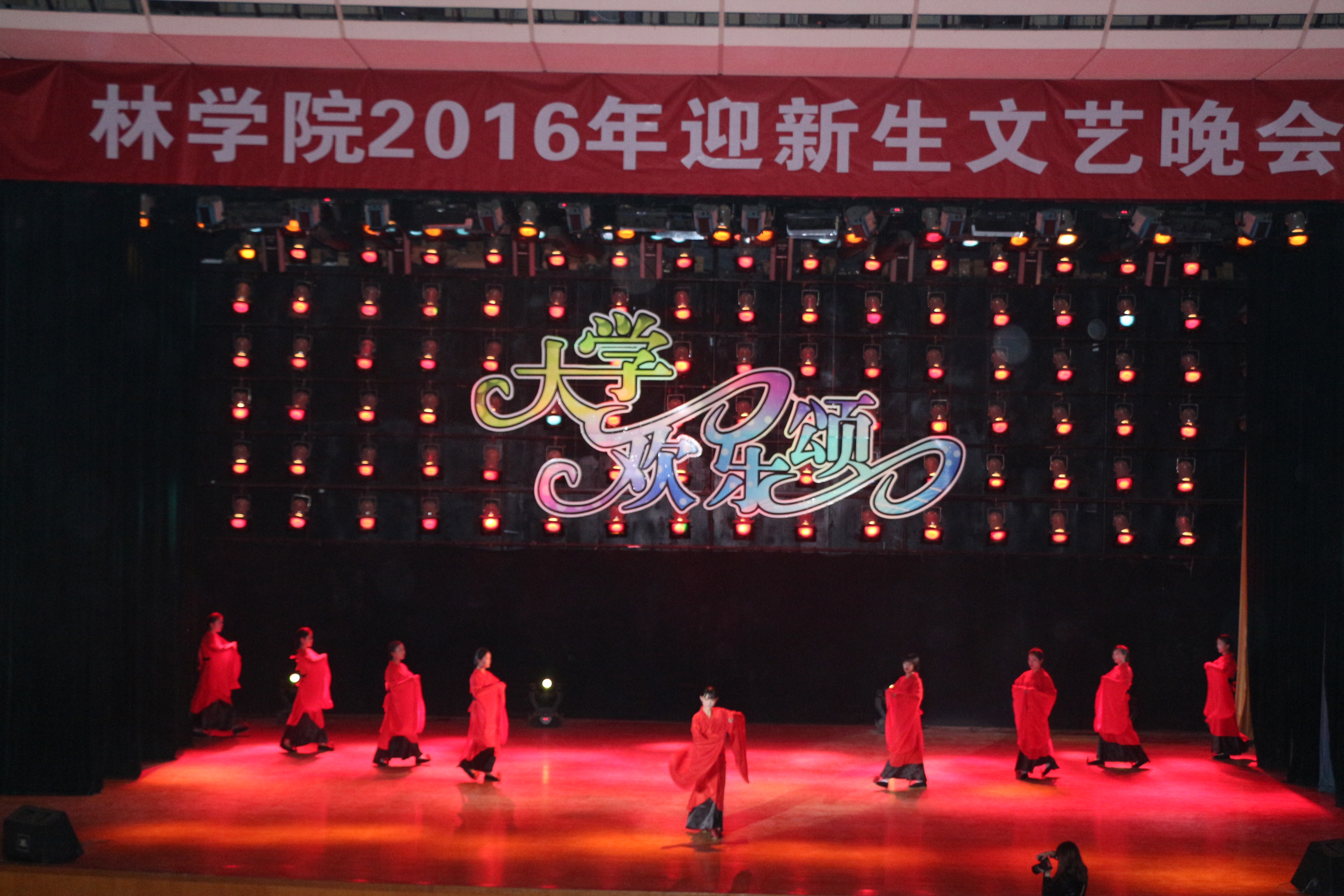 于10月14日晚在校大礼堂隆重举办“大学欢乐颂”迎新晚会。院党委书记郑东方、院长杨喜田、院党委副书记张华、副院长孔德政,以及16级班主任们来到现场与同学们一起观看晚会,此外,部分兄弟院系师生也应邀观看了本次演出。